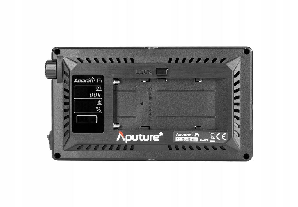 Panel sterujący lampy umieszczony został w wygodnym miejscu po lewej stronie urządzenia. Złożony zaledwie z włącznika i pokrętła jest intuicyjny i banalnie prosty w obsłudze . Czytelny wyświetlacz jednoznacznie obrazuje aktualny poziom naładowania wykorzystywanego akumulatora, moc oraz temperaturę barwową światła.