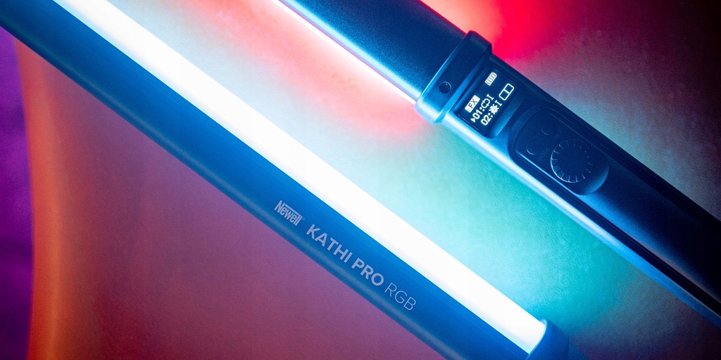 Doceniony w świecie filmowców i fotografów miecz świetlny Newell RGB Kathi doczekał się nowej odsłony w wariancie Pro. Lampa jest o 9 centymetrów dłuższa od swojej starszej siostry i oferuje jeszcze większą wszechstronność podczas kreatywnej pracy ze światłem. Podłużny kształt, lekka i wytrzymała obudowa wykonana z aluminium, wygodny uchwyt, wsparcie aplikacji mobilnej oraz możliwość instalacji na statywie z gwintem 1/4" to cechy, które pomogą tworzyć niepowtarzalną atmosferę za pomocą feerii kolorów dostępnych w obrębie przestrzeni barw HSI.