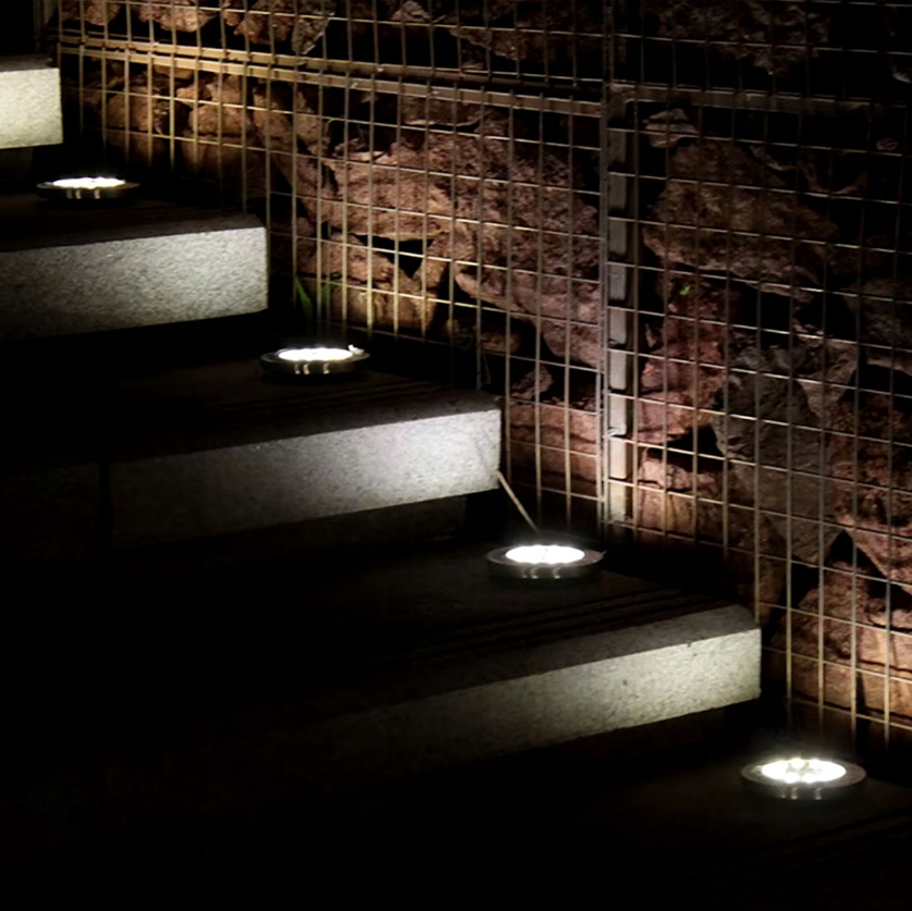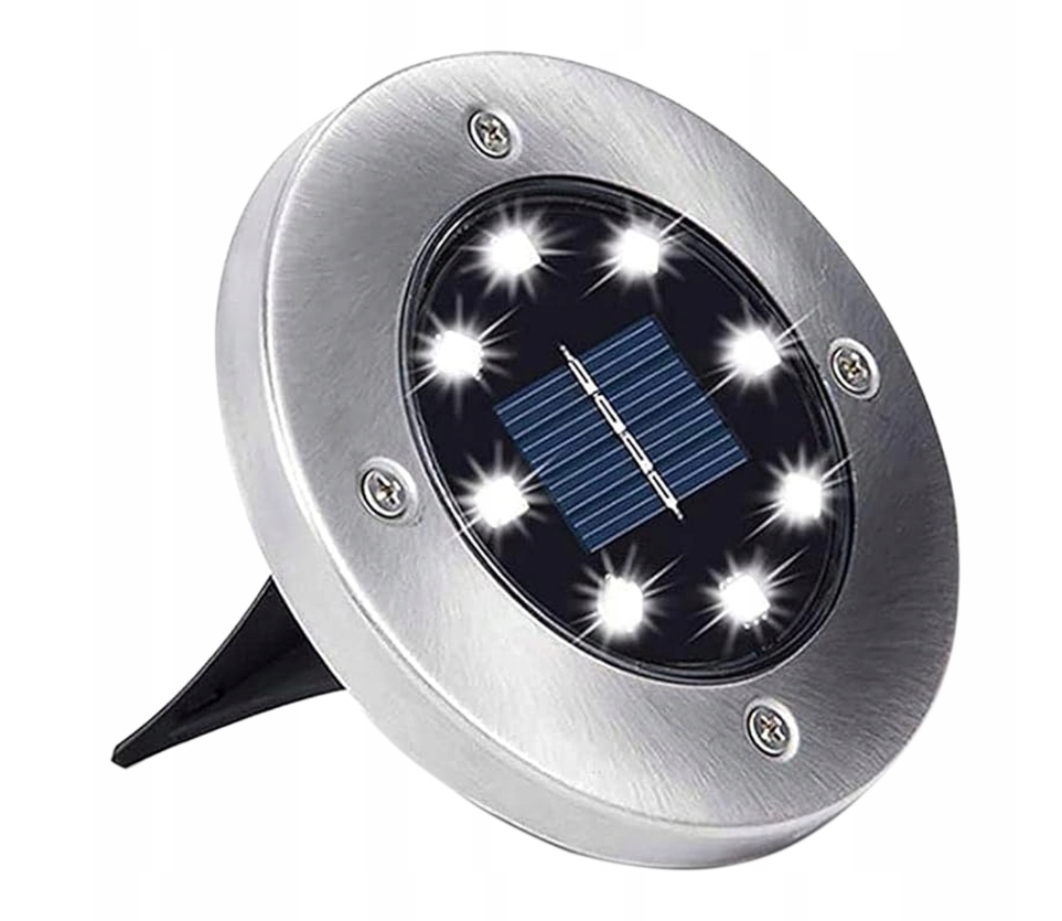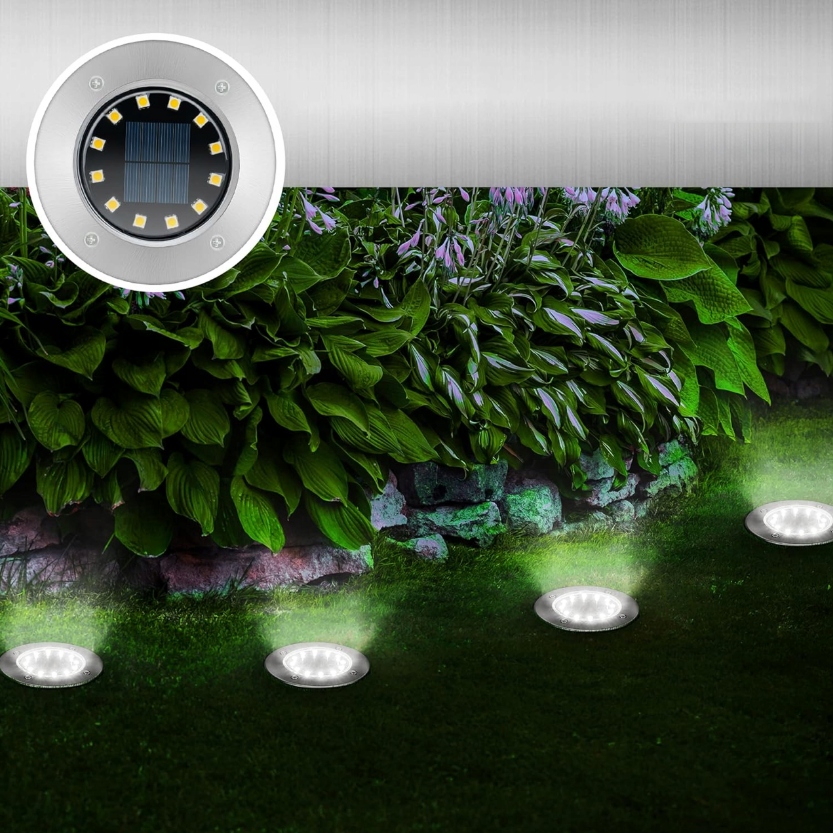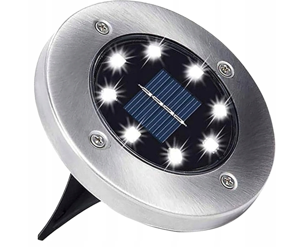 LAMPA OGRODOWA SOLARNA LED LAMPKI GRUNTOWE 4x LED DYSKI CZUJNIK ZMIERZCHU