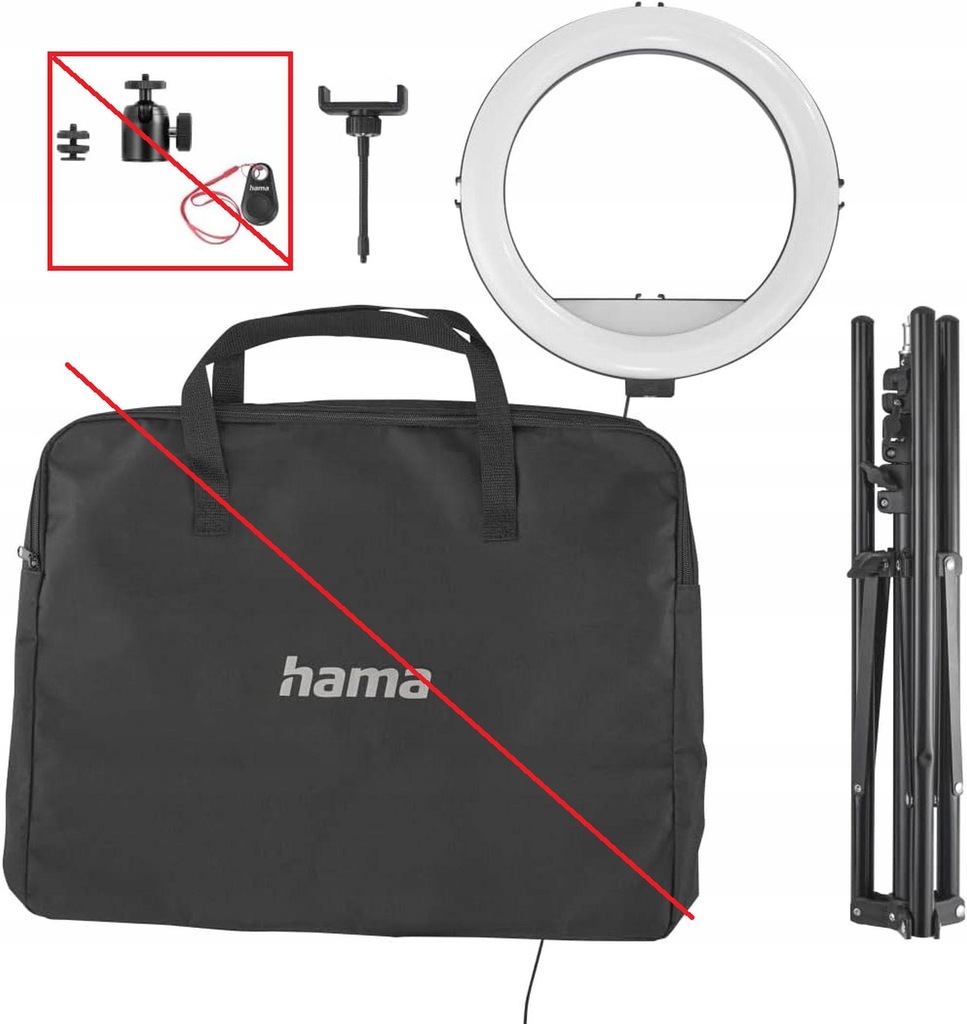 Okrągła lampa ze statywem: Studio Selfie Light z 12" (średnica zewnętrzna 30 cm) i pilotem na kablu, lampę można obracać i przechylać na głowicy kulowej statywu, wysokość całkowitą można zwiększyć 3 razy do 215 cm
