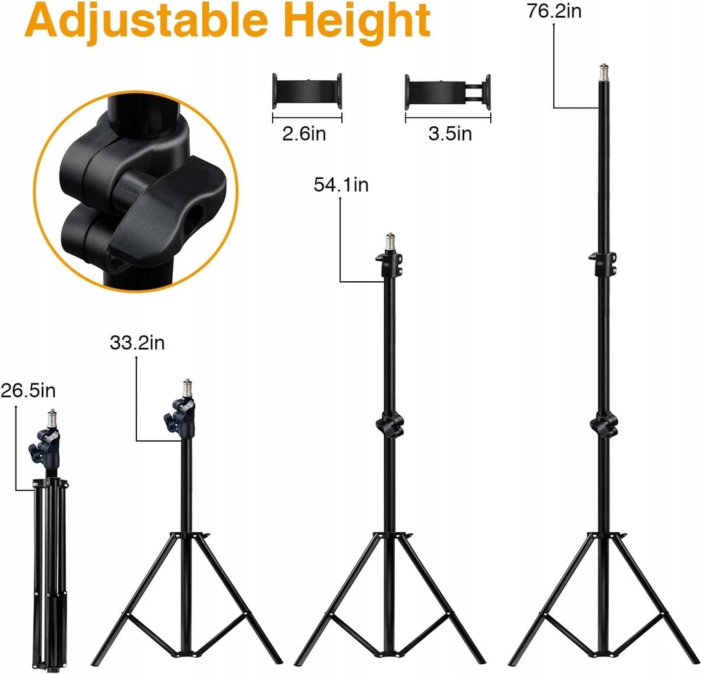Wytwarzaj delikatne światło bez oślepiania, trwałe i bezpieczne dla skóry. Użyj uchwytu ze stopu z zaktualizowanym statywem trójnożnym, aby zwiększyć stabilność, aby nie przewrócił się.