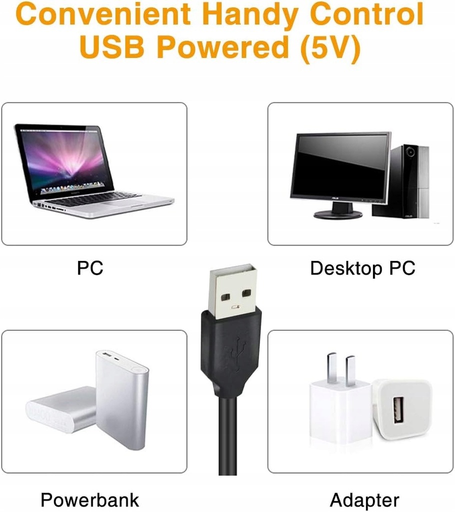 Kompatybilny z większością urządzeń, które obsługują złącza USB 5 V 2 A, np. laptopy, komputery, powerbanki, ładowarki USB, adaptery AC itd. Wszystkie te urządzenia mogą być źródłem zasilania lampy strumieniowej na żywo, dzięki czemu nie musisz się martwić o zasilacze.