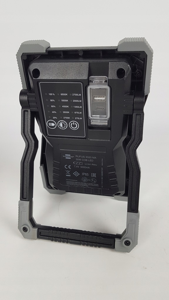 - Lampa robocza ze wskaźnikiem naładowania, funkcja powerbanku do wygodnego ładowania np. smartfonów (port ładowania typu C) oraz stabilna, wielopoziomowa rama rozkładana
