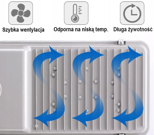 Lampa spełnia normy szczelności IP66, co oznacza, że jest odporna na takie warunki pogodowe jak: