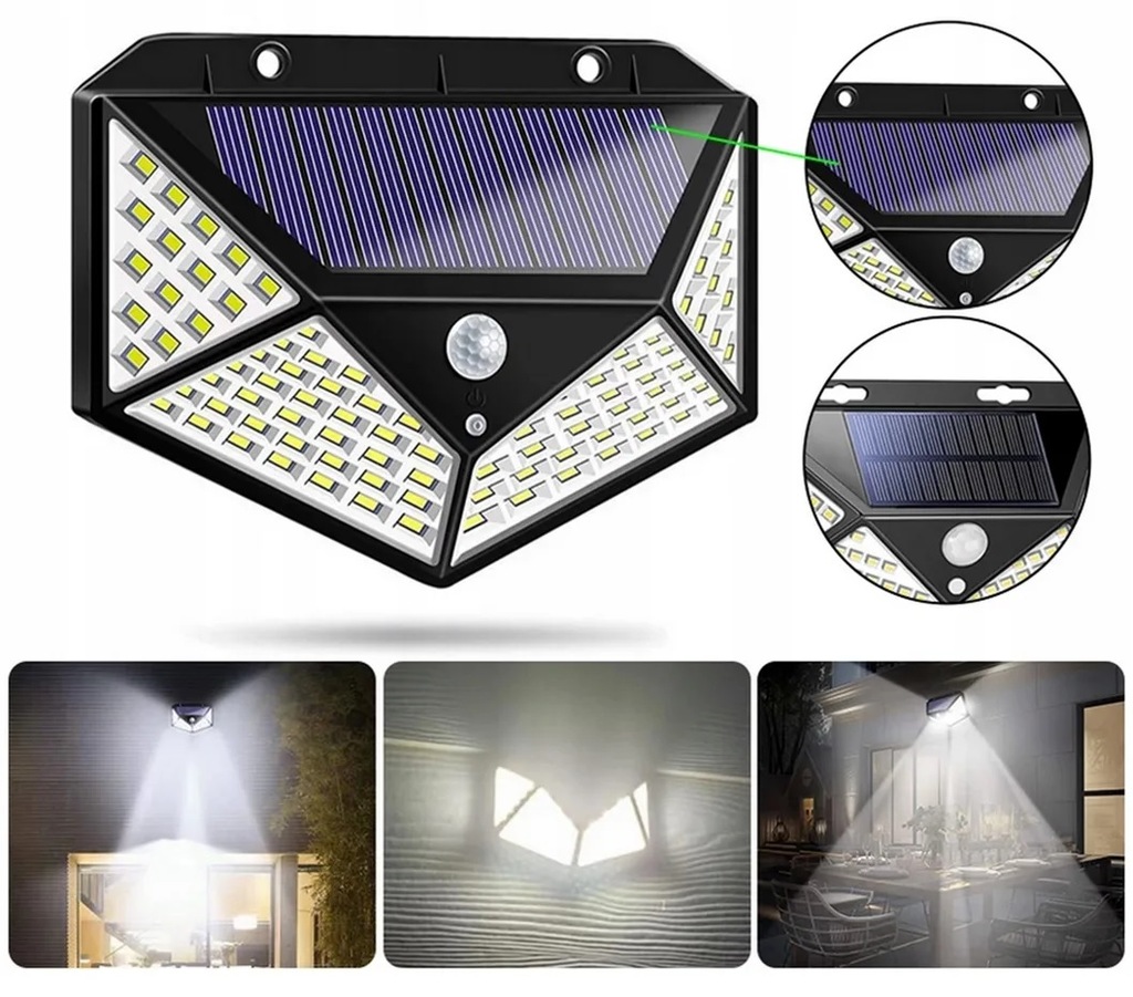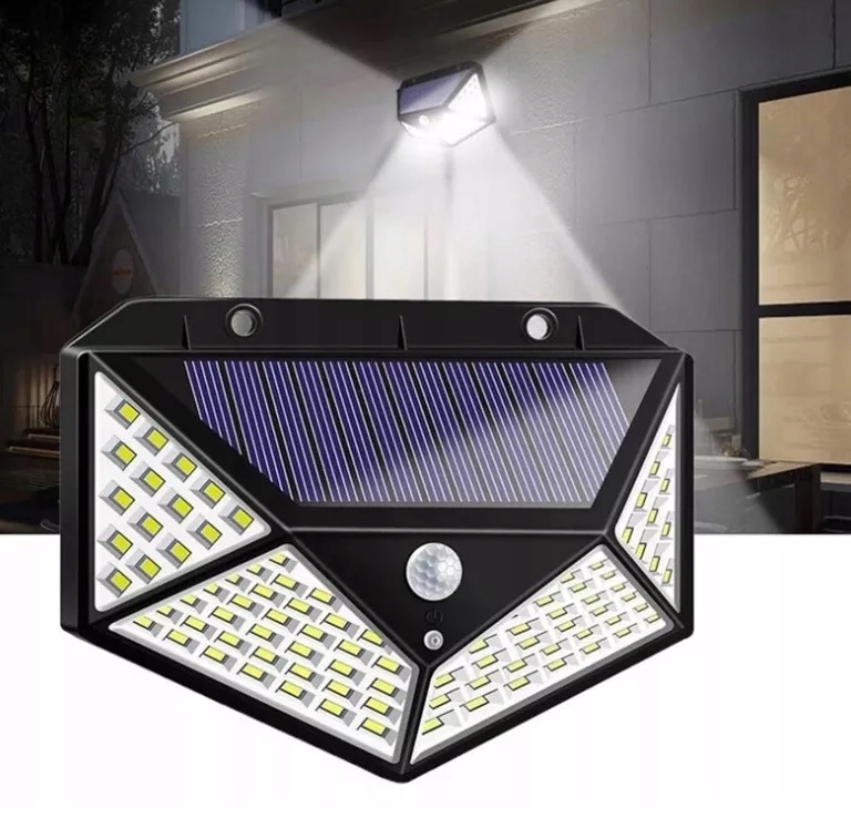 LAMPA SOLARNA Z CZUJNIKIEM RUCHU ZMIERZCHU 100 LED OGRODOWA NAŚCIENNA