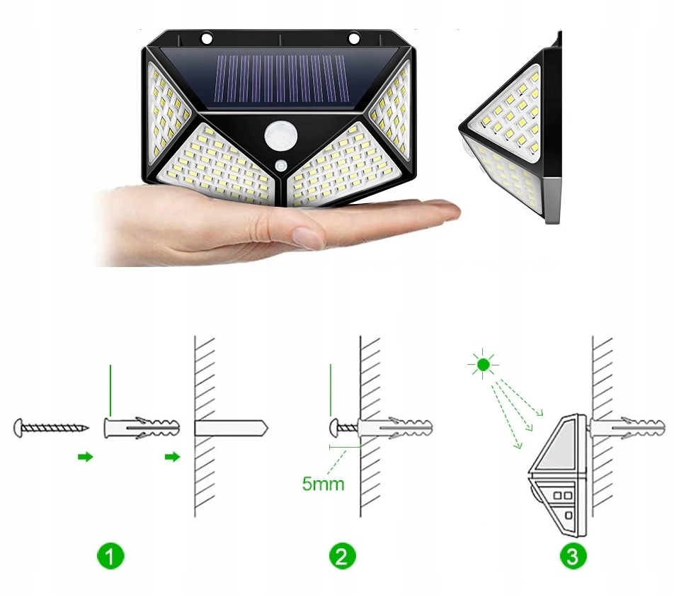 Nasza lampa solarna to doskonały sposób na oświetlenie. Montaż Panelu prosty i szybki. Produkt jest zasilany energią słoneczną. Zaletą urządzenia jest wbudowany czujnik ruchu i zmierzchu. Czujnik ruchu zapala lampę gdy wykryję ruch w pobliżu. Czujnik zmierzchu umożliwia włączenie lampy gdy znajduje się w miejscu słabo oświetlonym.