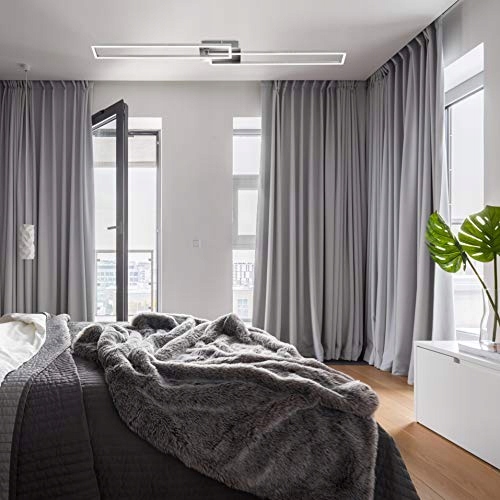 Ta nowoczesna plafoniera LED z dwoma prostokątnymi modułami LED (z których jeden jest obrotowy), wykonana z metalu-tworzywa, przyciąga wzrok również w Twoich pomieszczeniach dzięki metalowi o wyglądzie szczotkowanego aluminium oraz chromowanej metalowej powłoce na baldachimie lampy - wszechstronna, np. . B. jako lampa do salonu lub do sypialni
