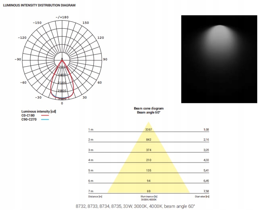 - Kąt świecenia (dot. LED): 60°