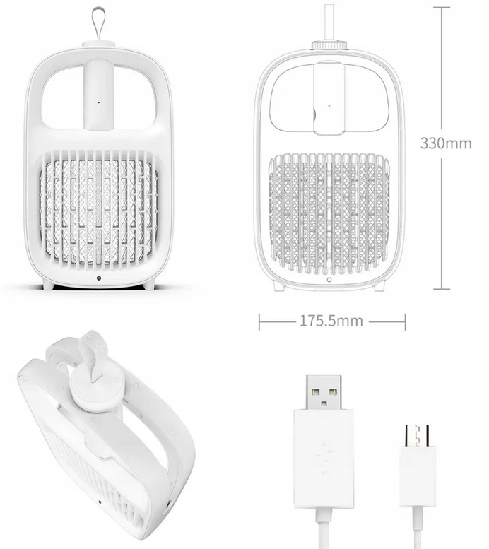 - Metoda przeciw komarom: Aktywna + pasywna (jako lampa lub jako packa)