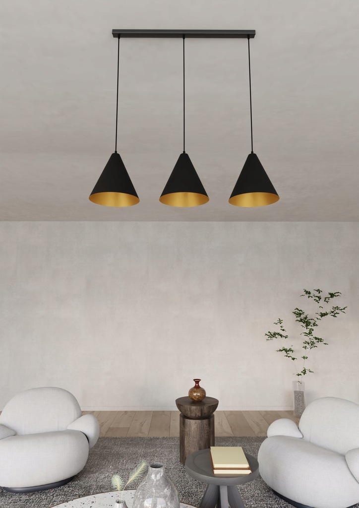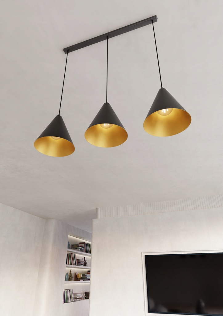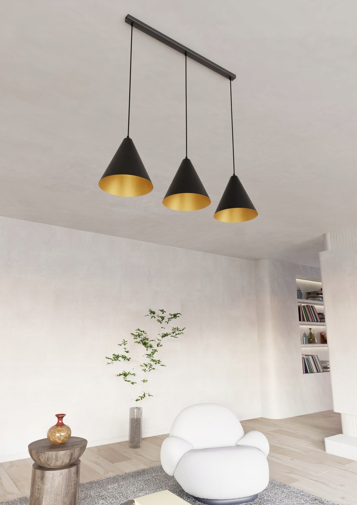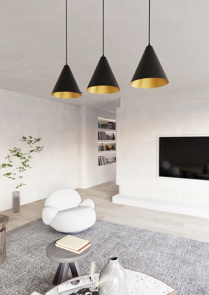Wprowadź do swojego wnętrza nutę industrialnego stylu z lampą wiszącej z serii REBEL. Solidna stalowa konstrukcja współgra z czarnym stożkowym kloszem, którego złote wnętrze dodaje wyjątkowego charakteru i ciepła rozproszonego światła. Taka kombinacja kolorów i materiałów sprawia, że lampa idealnie wpisuje się w nowoczesne, surowe przestrzenie, dodając im wyrazistości.