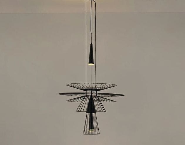 Konstrukcję lampy tworzy kompozycja metalowych prętów ułożonych kaskadowo z zastosowaniem dwóch źródeł światła skierowanych w dół. Oświetlenie górnego klosza odbija się od płaskiego okręgu w środku oprawy, który rozprasza strumień światła.