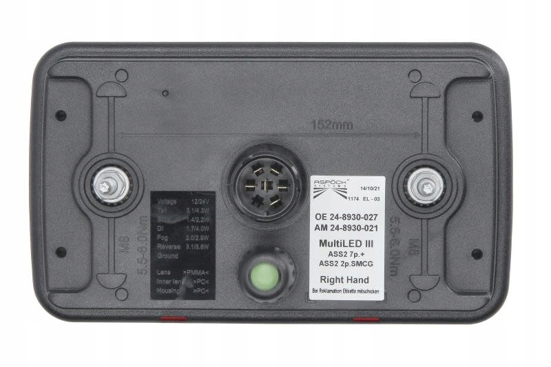 Lampa tył P MULTILED III (LED, 12/24V, z kierunkowskazem, ze światłem przeciwmgielnym, ze światłem cofania, ze światłem stopu, światło pozycyjne, odblask trójkątny, złącze: 2x ASS2 2PIN/ASS2 7PIN) pas