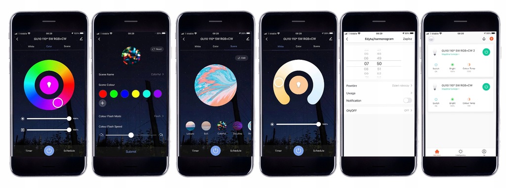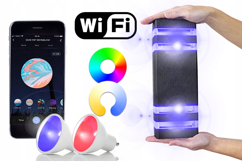 - Kontrola światła: Przy pomocy smartfona (połączenie WiFi)
