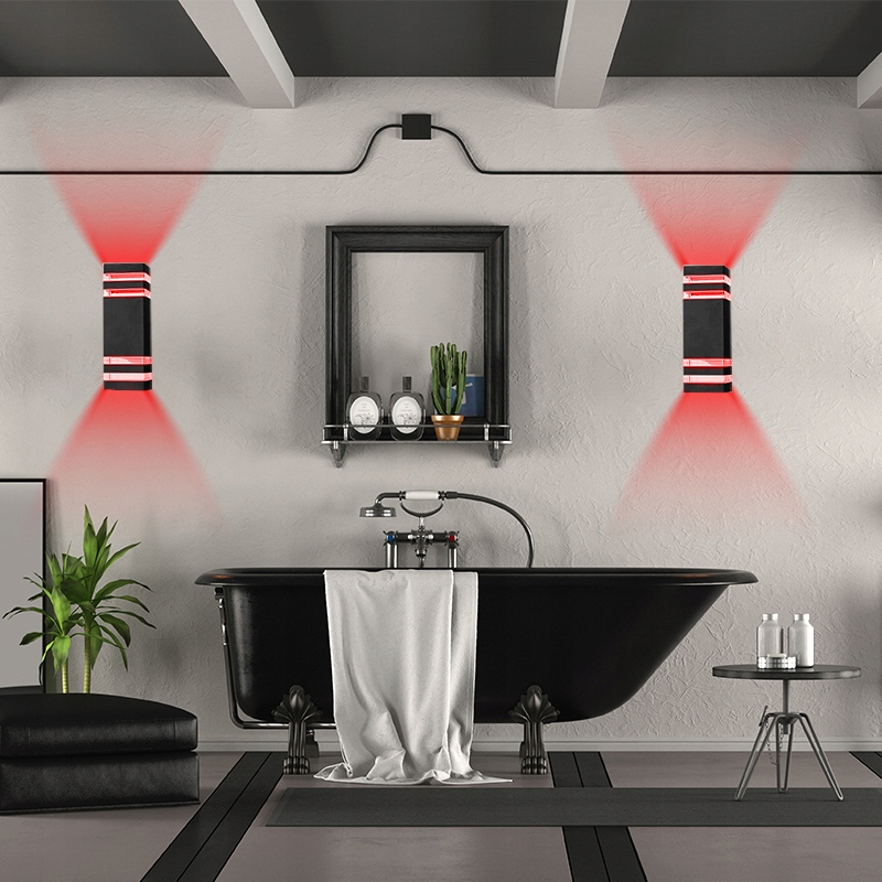 Kinkiet świeci dwukierunkowo (góra-dół) w ustawieniu pionowym bądź (lewo-prawo) w ustawieniu poziomym.