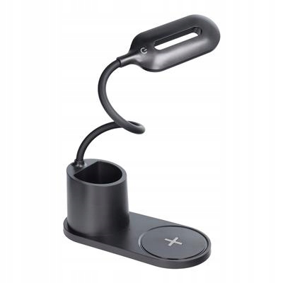 Lampka biurkowa LED + ładowarka indukcyjna 10W HT-513 czarna USZKODZONE OPAKOWANIE