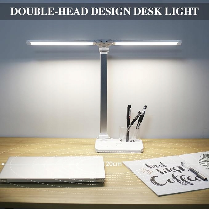 - O tym przedmiocieLampa akademicka z podwójną głowicą: Ramię obrotowe podwójnych lamp można rozszerzyć do 180° w poziomie lub złożyć o 180° w pionie, a podstawę można obrócić o 180°. W porównaniu do lamp jednogłowicowych dostępnych na rynku, nasza lampa biurkowa LED może zapewnić szerszy zakres i kąty oświetlenia.College Dorm Essentials for Guys: Ta lampka na biurko z 76 koralikami o pełnym spektrum działania nie powoduje migotania, cieni ani przyprawiającego o zawroty głowy światła. Wyeliminuj zmęczenie wzroku spowodowane efektem stroboskopowym konwencjonalnych źródeł światła. Chroń wzrok i zmniejsz zmęczenie oczu. Zawsze możesz dostosować światło do swojego zadania i warunków oświetleniowych otoczenia.Możliwość przyciemniania lampy biurkowej z portem ładowania USB (zasilacz nie wchodzi w skład zestawu): Możesz wybrać wygodne ustawienie, według własnego uznania, do czytania, pracy, nauki, rysowania, relaksu, robienia na drutach i rękodzieła. Zaprojektowany ze sterowaniem dotykowym, co ułatwia ustawienie poziomu jasności poprzez lekkie przesunięcie panelu dotykowego.Twój asystent snu: wyłącz światło automatycznie po 45 minutach, jeśli zaśniesz w nocy podczas nauki lub chcesz użyć go jako lampki nocnej. Dzięki inteligentnej funkcji pamięci, która zapamiętuje kolor i jasność światła podczas ostatniego użycia, co zapewnia wygodę przy następnym użyciu, pod warunkiem, że nie odetniesz zasilania tej lampy. Wysoce wydajne diody LED zużywają o 80% mniej energii niż konwencjonalne żarówki i mają żywotność 50 000 godzin.