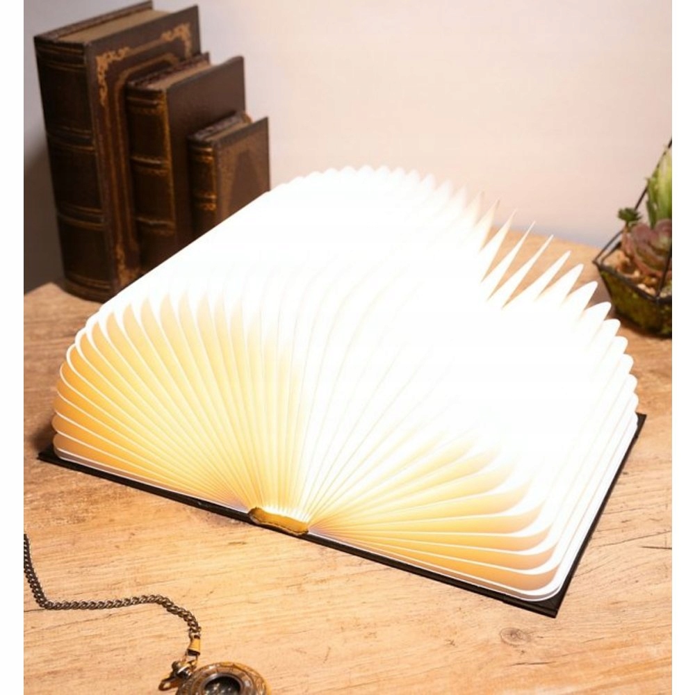 Rewelacyjna lampka ładowana z kabla USB [dołączony]. Idealna na lampkę nocną. Ma wygląd magicznej księgi. Po otwarciu książka świeci żółtym światłem.