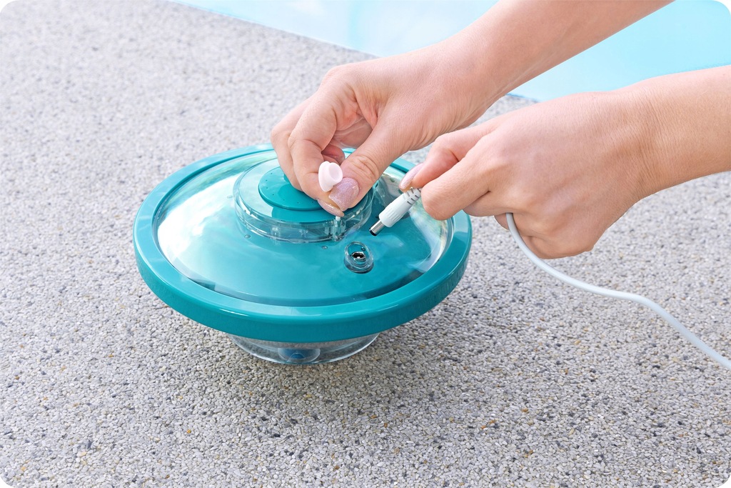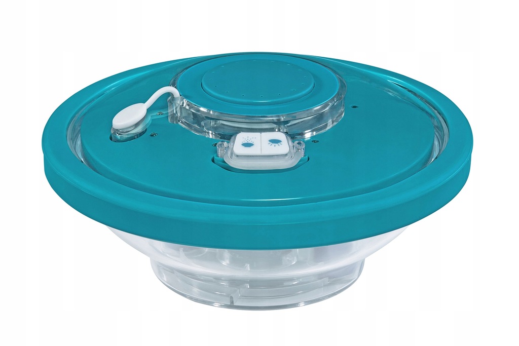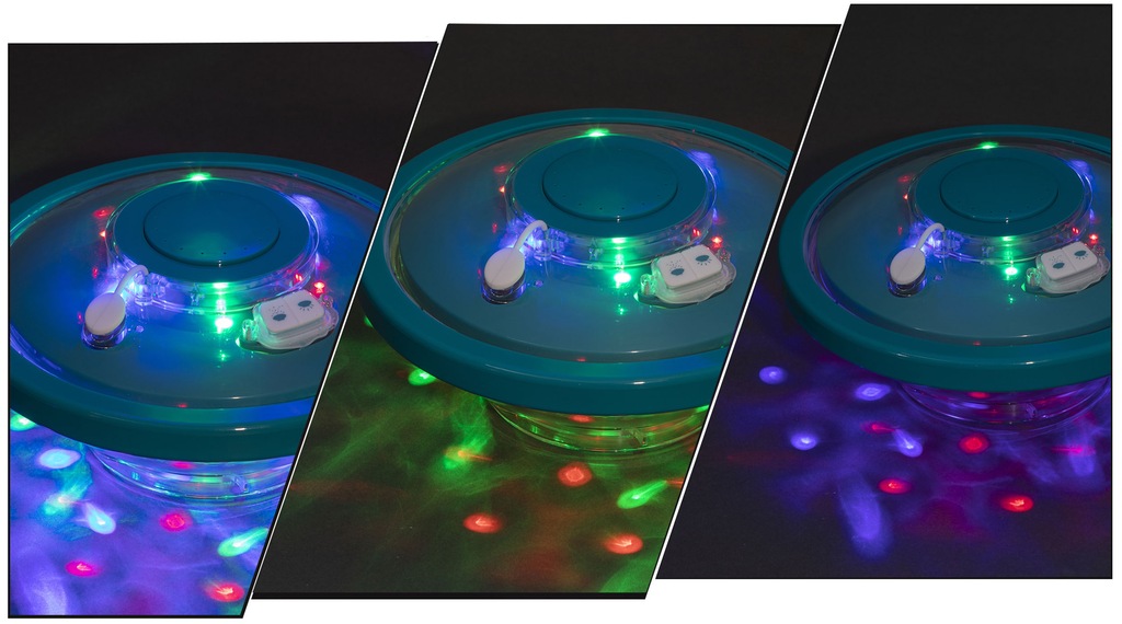 Romantyczny wieczór w basenie ogrodowym? A może szalona zabawa przy blasku zmieniającego się światła lub orzeźwiająca fontanna? Bez względu na to, którą opcję wybierzesz, dzięki pływającej lampie LED z fontanną marki Bestway, każdy relaks w basenie ogrodowym będzie niepowtarzalny i pełen atrakcji. To nowoczesne urządzenie oferuje Ci trzy barwy światła (czerwony, niebieski i zielony) i 3 tryby świecenia o imponującym zasięgu świecenia do 2,43 metra. Możesz wybrać między naprzemiennym miganiem losowych kolorów, wolnym zmienianiem się poszczególnych kolorów, a także szybkim naprzemiennym miganiem kolorów.