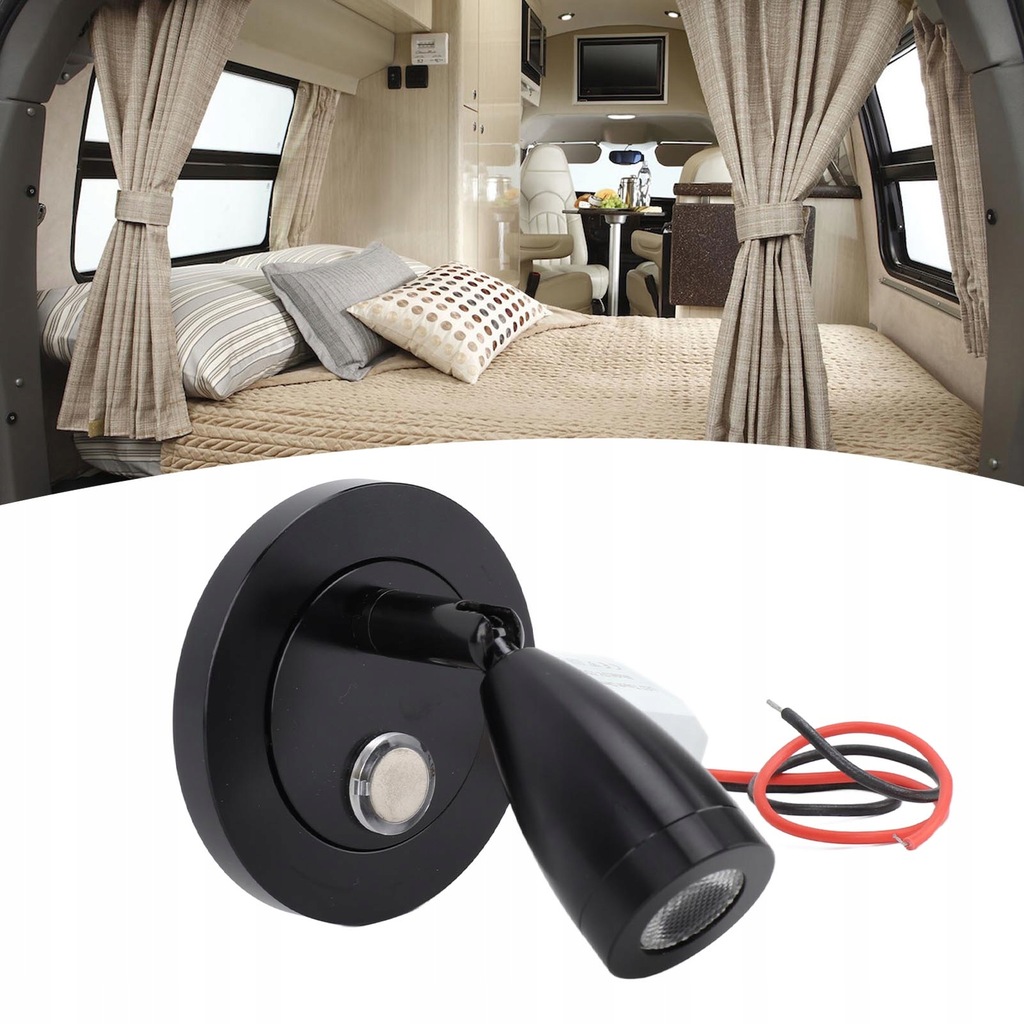 Lampka nocna LED do RV o wysokiej jasności DC12 do 24V oszczędzająca energię stop aluminium sterowanie dotykowe lampka do czytania czarna