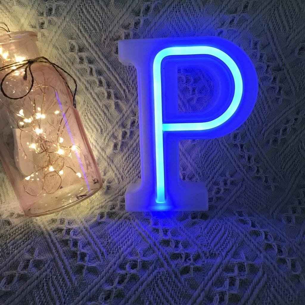 Lampka nocna LED litera P neon niebieskie światło stojąca 16,5 cm