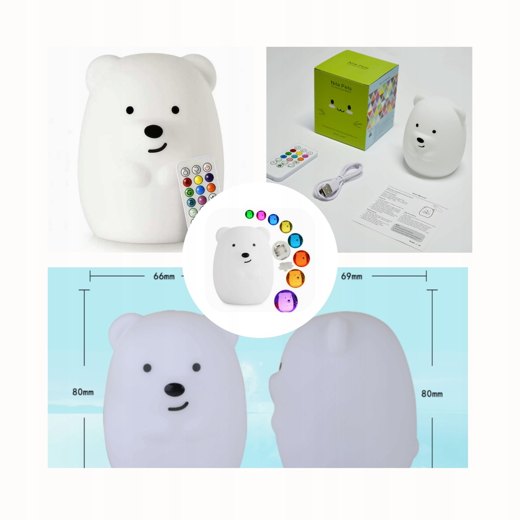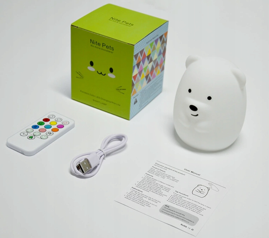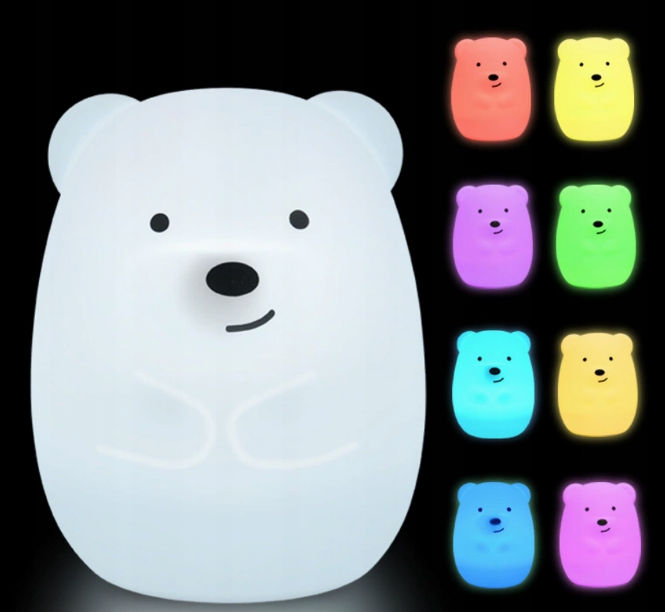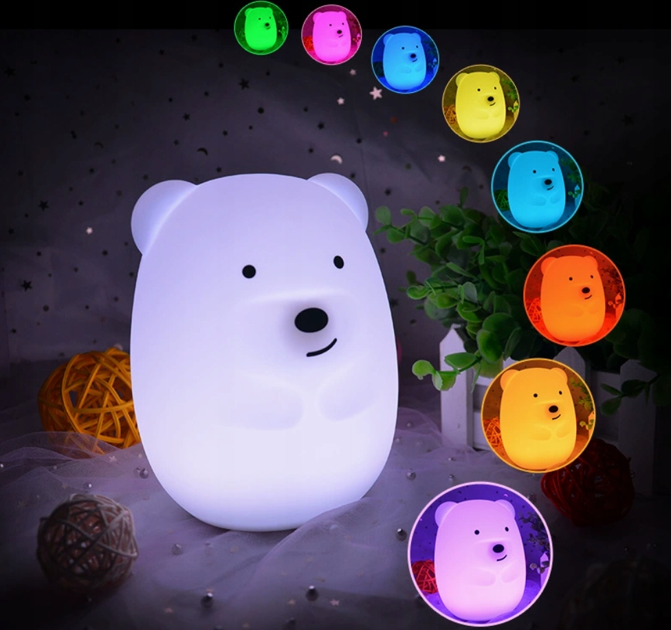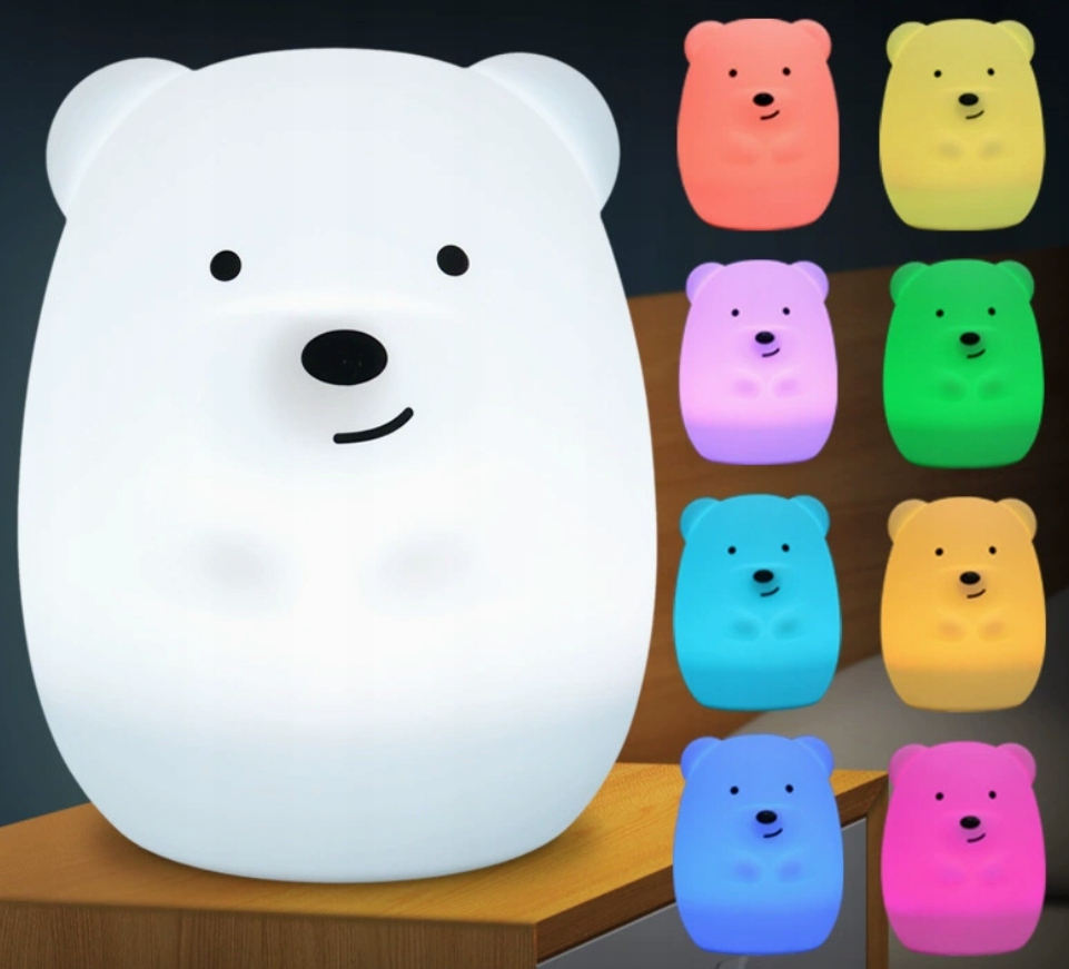 LAMPKA NOCNA miś SILIKONOWA dla dzieci KOLOROWA LED niedźwiedź MISIO 3D RGB