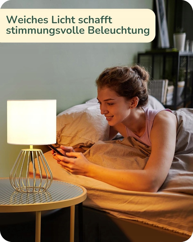- Lniany biały klosz – rozprasza światło i chroni oczy