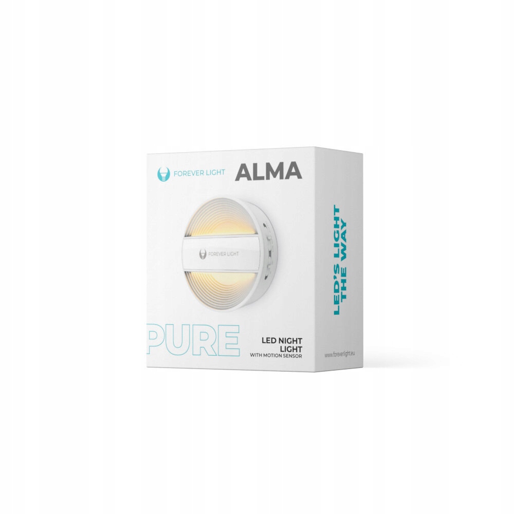 CECHY PRODUKTU Lampka nocna okrągła LED PURE FLC-20 ALMA PIR biała 500mAh Forever Light