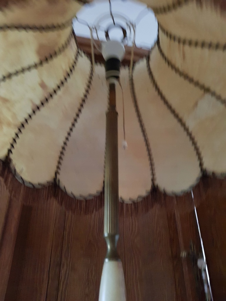Wysokość 165 cm, wymiary podstawy 28 cm, średnica abażura 54 cm, zapraszam na pozostałe moje aukcje,