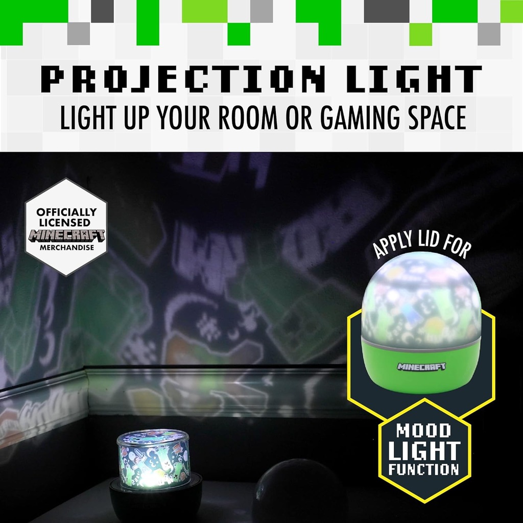 Stwórz kolorowy świat, oświetlając ściany i sufit swojego pokoju za pomocą tej lampy do wyświetlania obrazu. Zrelaksuj się, gdy Twoja przestrzeń stanie się podwodną fantazją wypełnioną ulubionymi postaciami i ikonami Minecrafta.