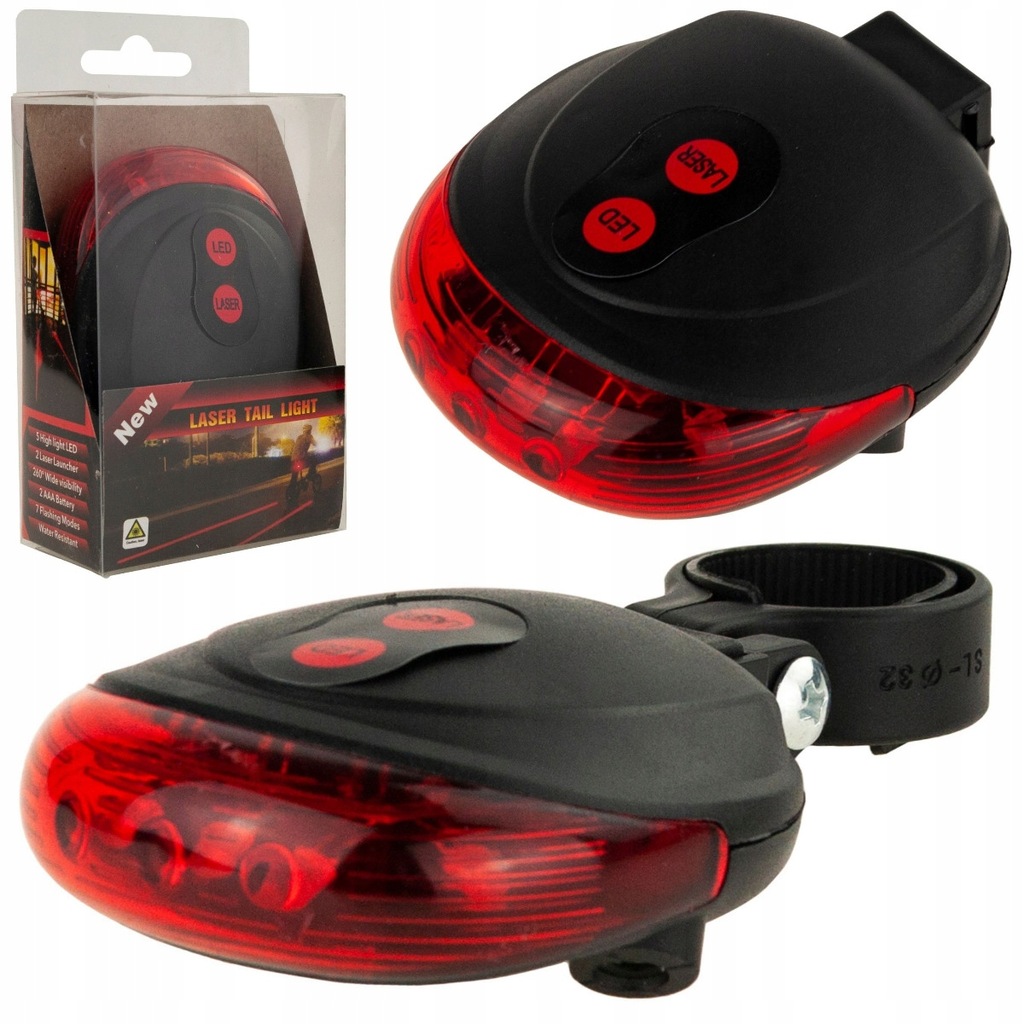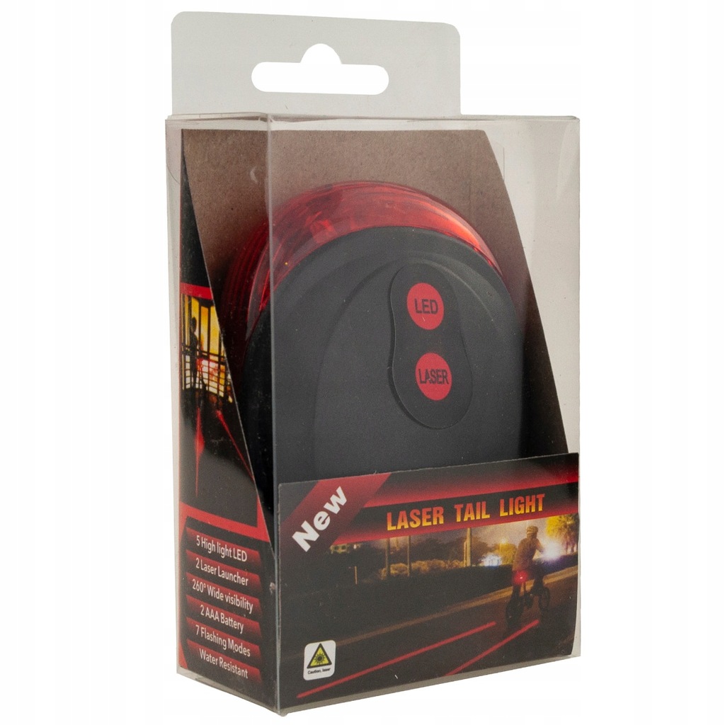 - Tylna diodowa lampa rowerowa wyposażona w dwa czerwone wskaźniki laserowe, które po obu stronach roweru rzutują na jezdnię, wyznaczając w ten sposób bezpieczną strefę mijania rowerzysty.
