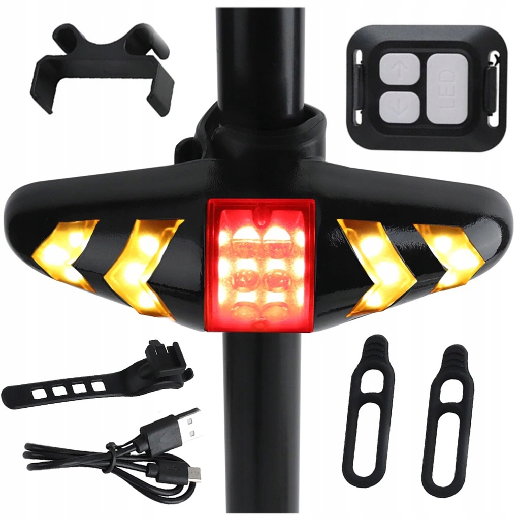 Mocna lampka rowerowa LED tylna z kierunkowskazami i funkcją sterowania pilotem bezprzewodowym.