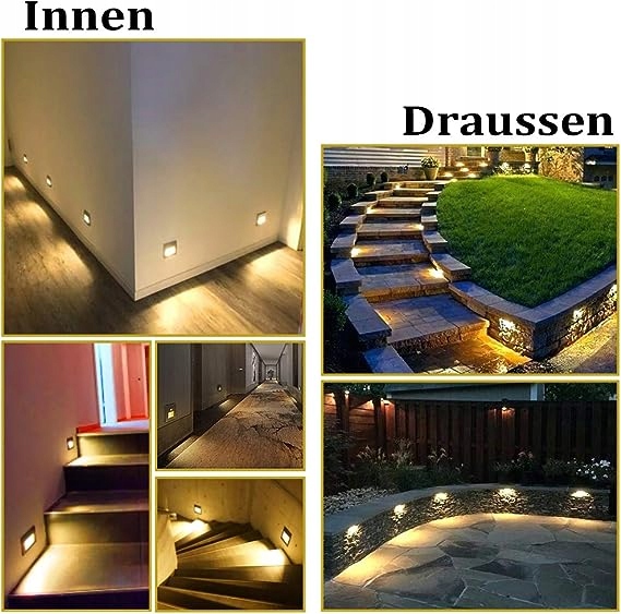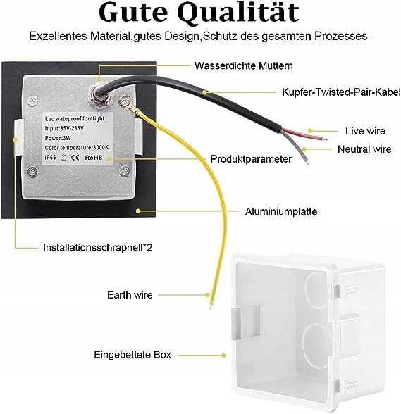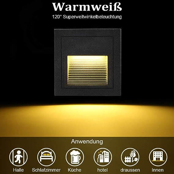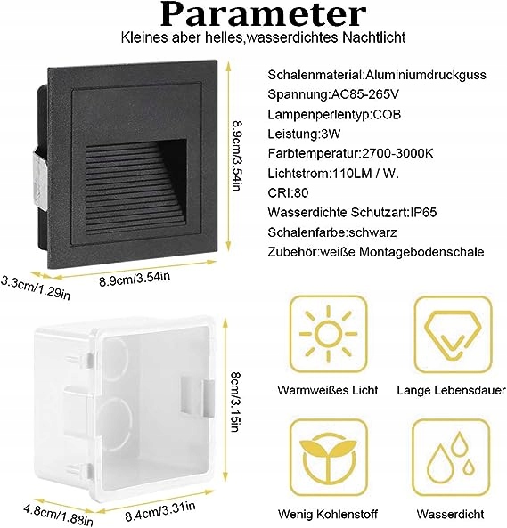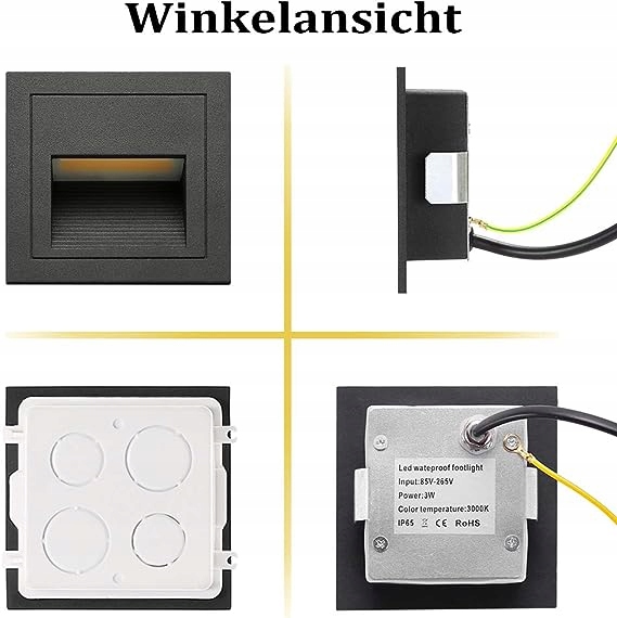 Dobra jakość: wykonana z aluminiowej kwadratowej lampy schodowej, wodoodporna IP65, odpowiednia do użytku wewnątrz i na zewnątrz. (IP65 może zapobiegać rozpryskiwaniu się wody i nadaje się do użytku na zewnątrz, ale nie można go instalować bezpośrednio pod wodą)