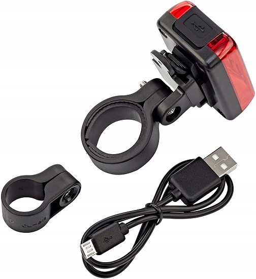 W zestawie: Lampka tylna, uchwyt, zacisk do montażu Ø25-31mm, zacisk do montażu Ø10-18mm, kabel ładujący, oryginalne opakowanie