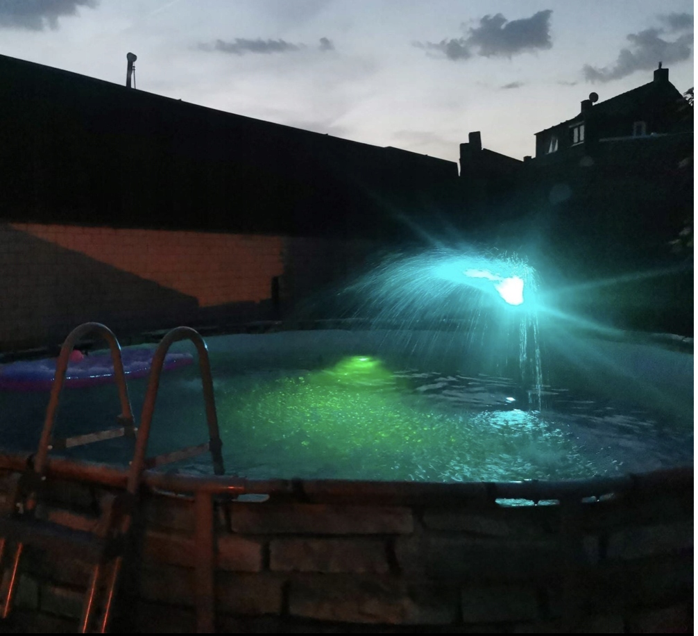 Super jasne 10 wbudowanych diod LED sprawia, że 7-centymetrowe oświetlenie basenu jest bardziej atrakcyjne. Funkcja ściemniania zapewnia większy wybór i tworzy piękniejszą atmosferę.