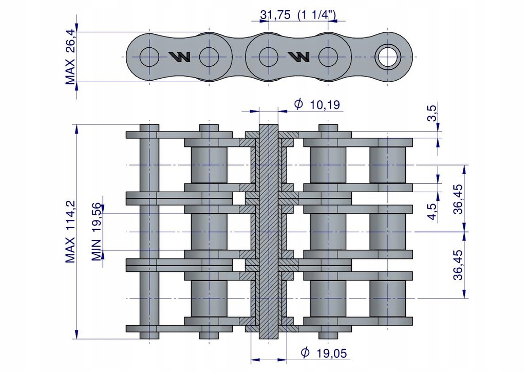 Łańcuch rolkowy 20B-3 (R3 1.1/4) 5 m Waryński (17635519222)