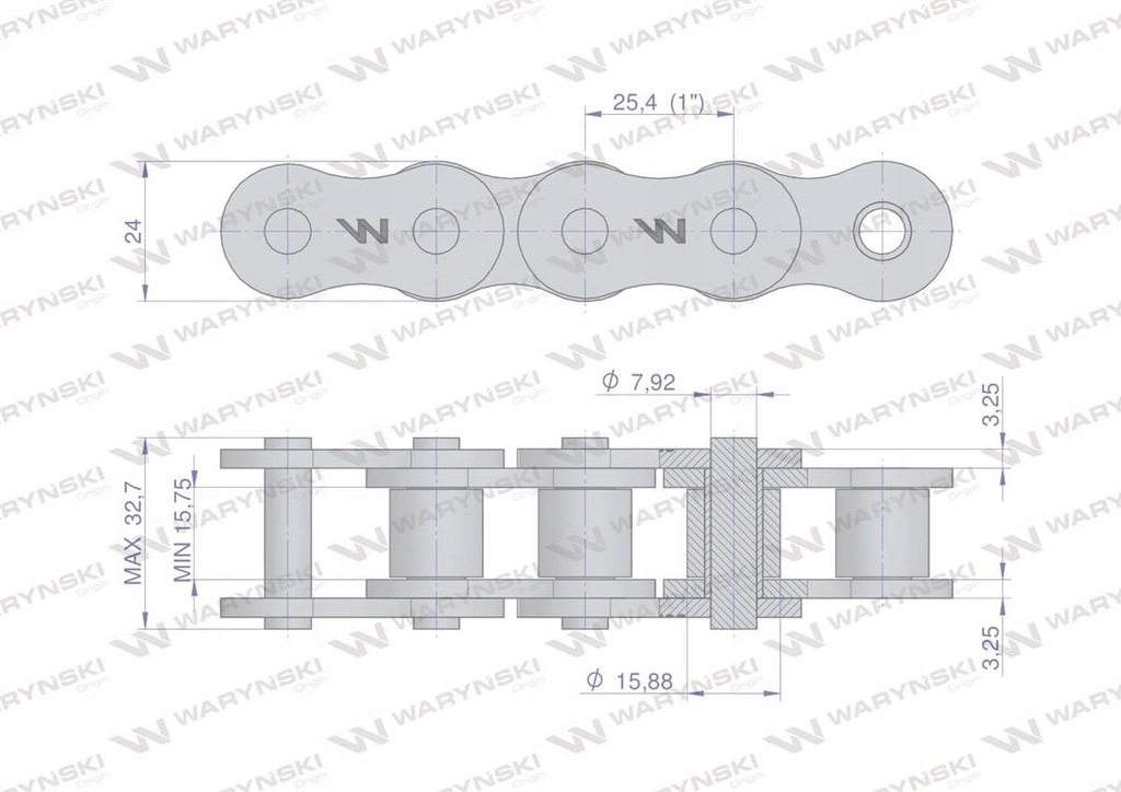 Łańcuch rolkowy wzmocniony 16A-1 ANSI A 80 (R1 1) 2.5m Waryński