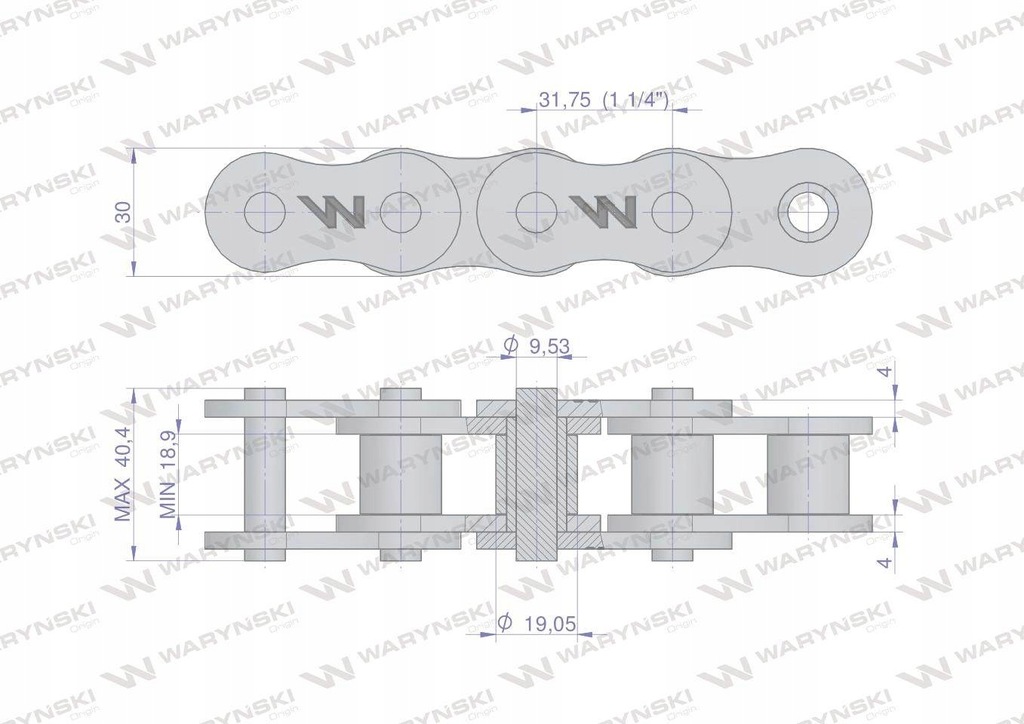 Łańcuch rolkowy wzmocniony 20a-1 ansi a 100 r1 1.1/4 2.5 m waryński