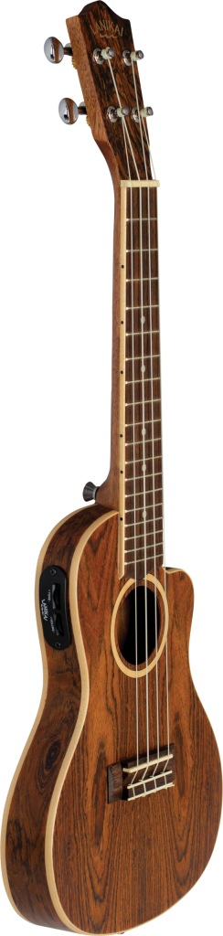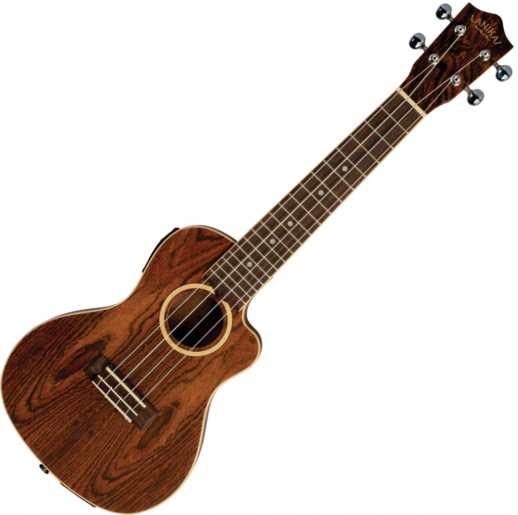 Profesjonalne Ukulele koncertowe LANIKAI FB-CETC CONCERT to najwyższej jakości instrument dla wszystkich muzyków poszukujących komfortu gry, estetyki wykonania instrumentu oraz tego co najważniejsze, czyli wyjątkowego brzmienia. Ukulele zostało wyposażone w wysokiej jakości chromowane klucze otwarte, zapewniające precyzyjne strojenie. Siodełka na główce i mostku zostały wykonane z mateirłu Nubone XB?, który zapewnie wyraźny dźwięk i długi sustain. Wzorzste drewno Bocote, z którego został wykonany instrument, pięknie się prezentuje i dostarcza wyjątkowego, ciepłego i orkągłego dźwięku. Ukulele LANIKAI FB-CETC CONCERT posiada wbudowany preamp Shadow? SH-3V. Dodatkowo do ukulele dołączony jest gruby, wytrzymały futerał, umożliwiający bezpieczny transport instrumentu.