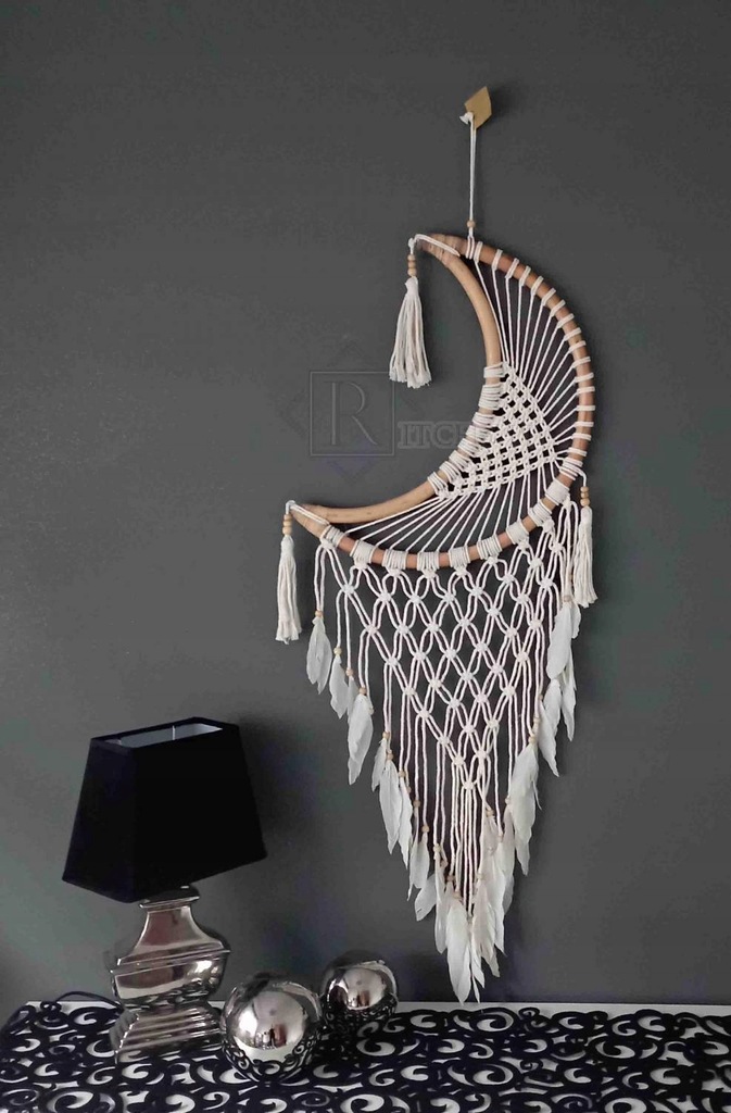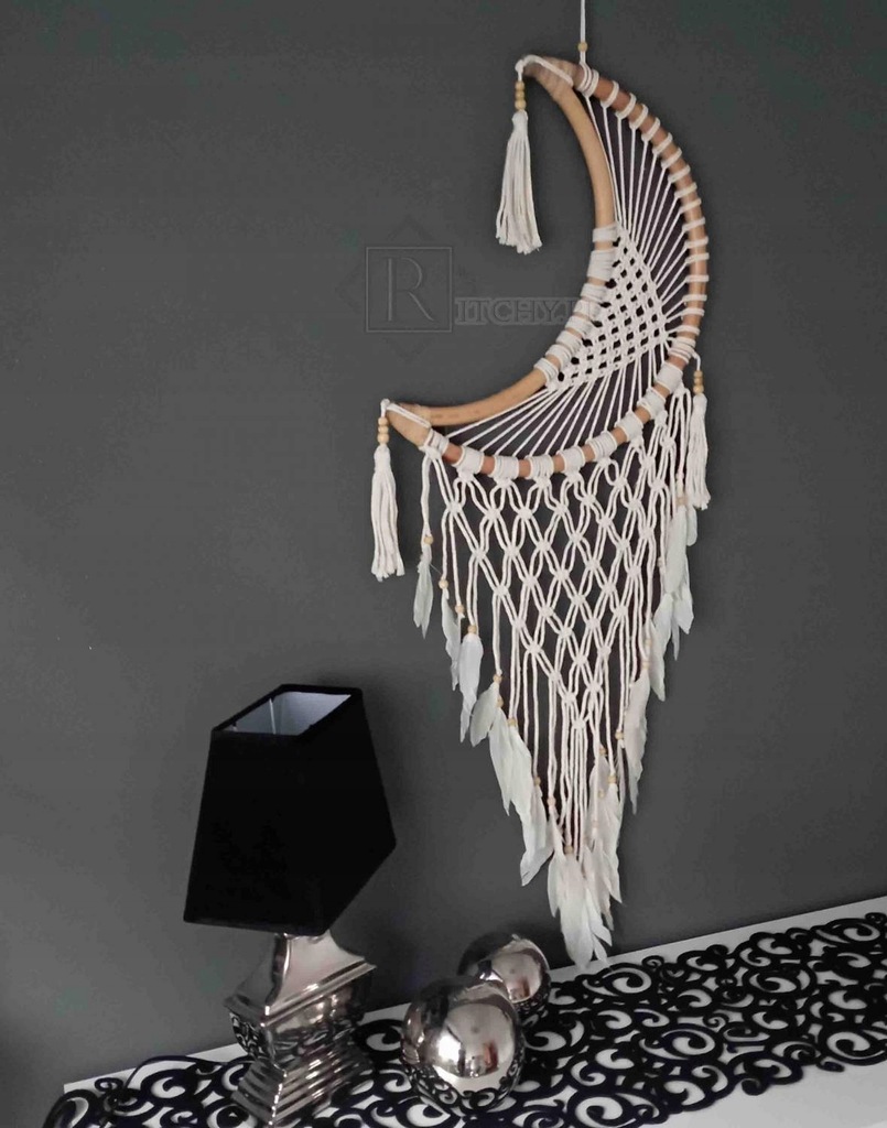 Ręcznie wykonany dekoracyjny łapacz snów ksiezyc bambusowy