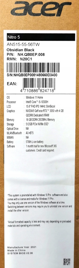 LAPTOP ACER NITRO 5 N20C1 komplet