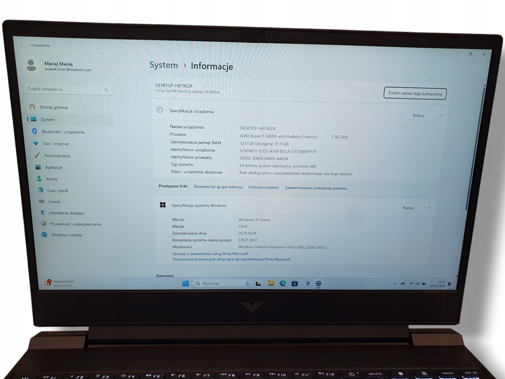 Laptop HP Victus 15-fb0124nw