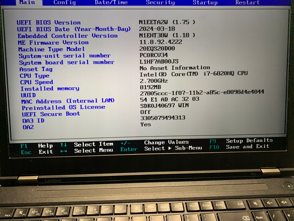 - Lenovo ThinkPad P70 i7-6820 32GB 512SSD UHD M4000M