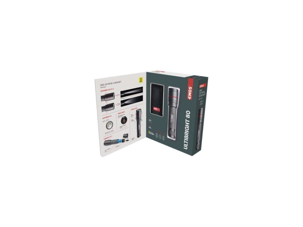 Latarka EMOS P3180 Ultibright 80 wyposażona jest w antyrefleksową, mineralna szybkę z grubego nietłukącego szkła. Hartowana ultra jasna szybka, spełnia dobre warunki przepustowości światła. Zastosowana dioda CREE LED oraz funkcja FOCUS, pozwala generować skupione światło o mocy do 600 lumenów i skutecznym zasięgu do 230 metrów. Dodatkowo konstrukcja obudowy posiada kształt, dzięki któremu szkło i odbłyśnik są dobrze chronione przed uszkodzeniami mechanicznymi, co jest bardzo istotne w tracie użytkowana w ciężkich warunkach terenowych i sytuacjach ekstremalnych.