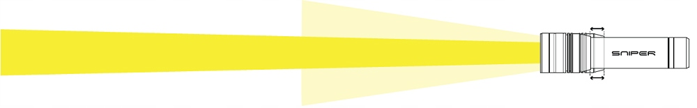 Sniper 3.2 jest zasilany bateriami R03 / AAA, które wystarczają, aż do 47 godzin świecenia (zależnie od wybranego trybu). Funkcja fokus, pozwala jedną ręką, płynnie regulować kształt wiązki światła od skupionego do rozproszonego.