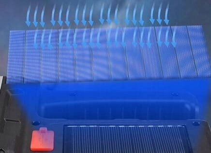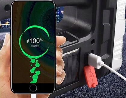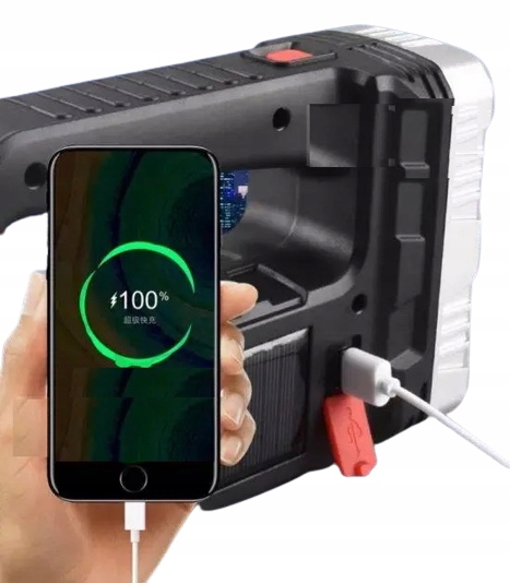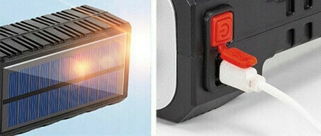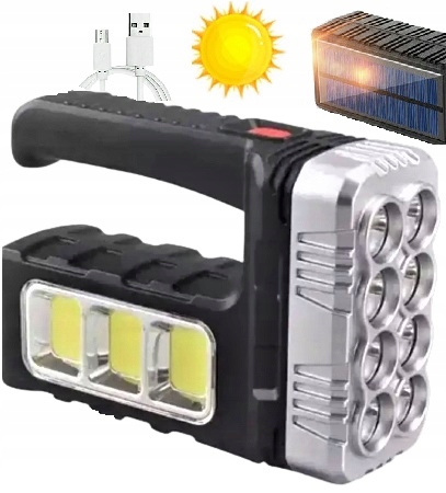 Latarka posiada wbudowany panel solarny, który poza tradycyjnym ładowaniem za pomocą ładowarki umożliwia naładowanie urządzenia za pomocą panela słonecznego umieszczonego na bocznej stronie latarki. Dzięki temu naładujemy nasze urządzenie w każdych warunkach nawet nie posiadając dostępu do gniazdka elektrycznego. Funkcja ta doskonale sprawdzi się na wyprawy w plener, biwaki, piesze wycieczki, oraz wszędzie tam gdzie niema prądu.