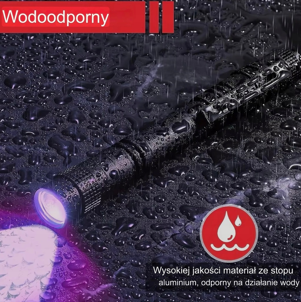 Wykonana z trwałego stopu aluminium, wodoodporna (IPX4) i ultralekka (25 g), ta latarka to idealny wybór zarówno do użytku domowego, jak i profesjonalnego. Mocna dioda XPE-R3 (3W) zapewnia intensywne światło UV, a zasilanie na baterie AAA gwarantuje wygodę użytkowania. Dzięki smukłej konstrukcji (13,2 cm długości) zmieści się w każdej kieszeni!