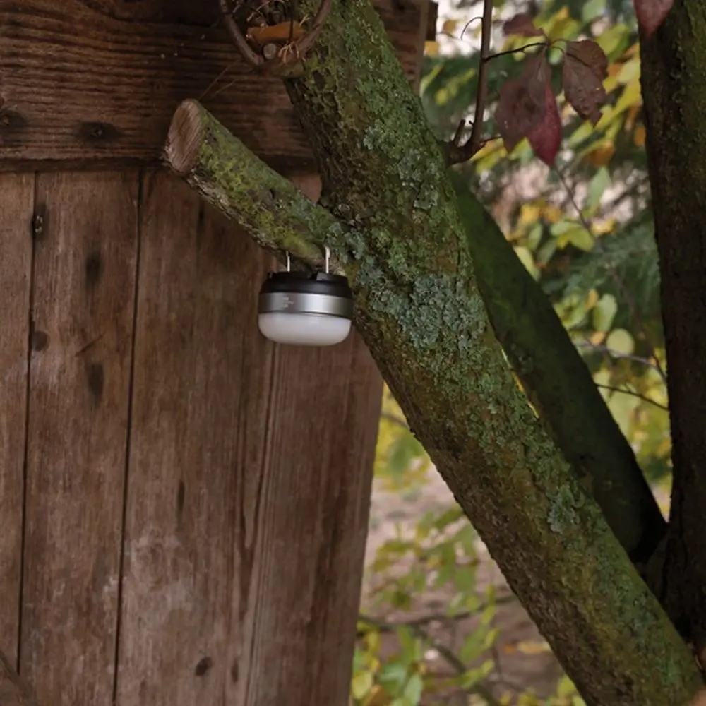 Lampka na baterie (3x AAA dołączone w zestawie), daje możliwość wyboru natężenia światła pomiędzy 100%-50%-10%, posiada również funckje SOS. Dzięki wysokiej odporności na ciała obce i zachlapania (IP44), idealnie sprawdzi się jako lampka turystyczna/campingowa.