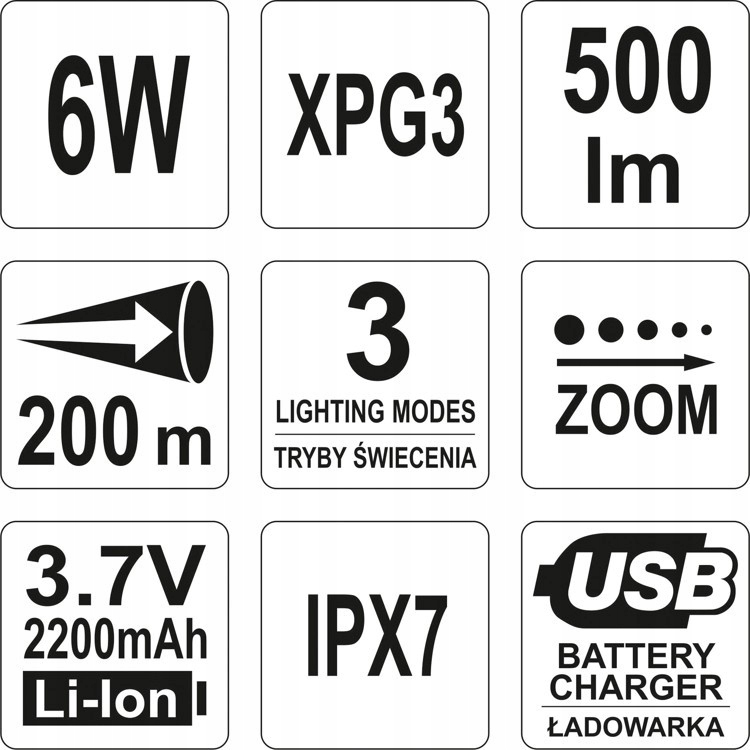 LATARKA XP-G3 CREE 6W AKUMULATOROWA / YT-08568 / YATO