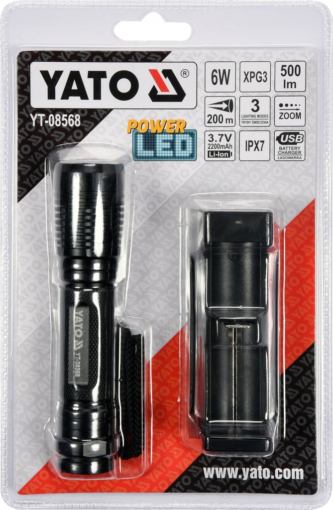 LATARKA ZOOM LED XP-G3 CREE 6W + AKU I ŁADOW. USB