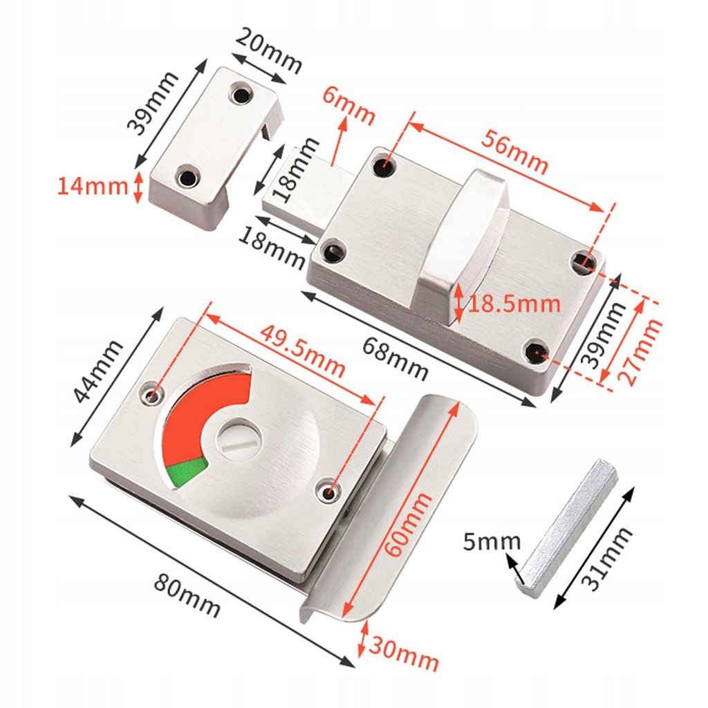 [Red and Green Indicator]The lock features a red/green indicator that clearly shows when restroom is in use or available.
